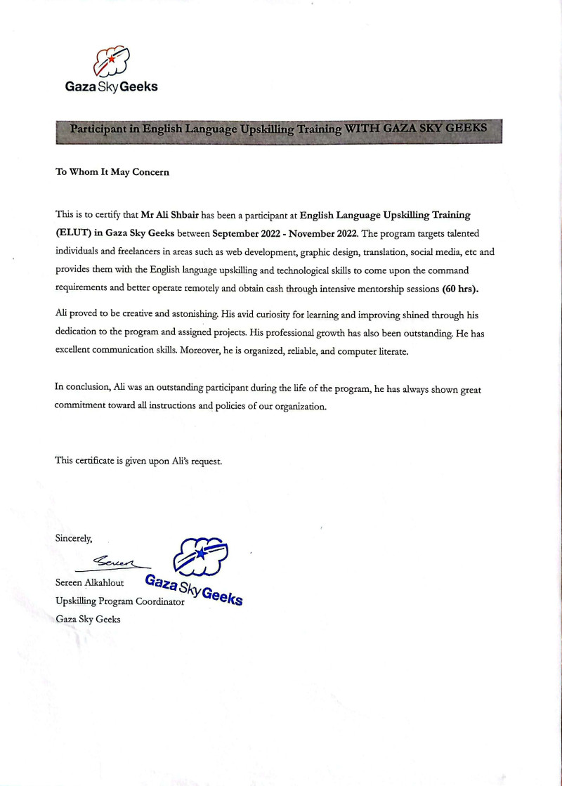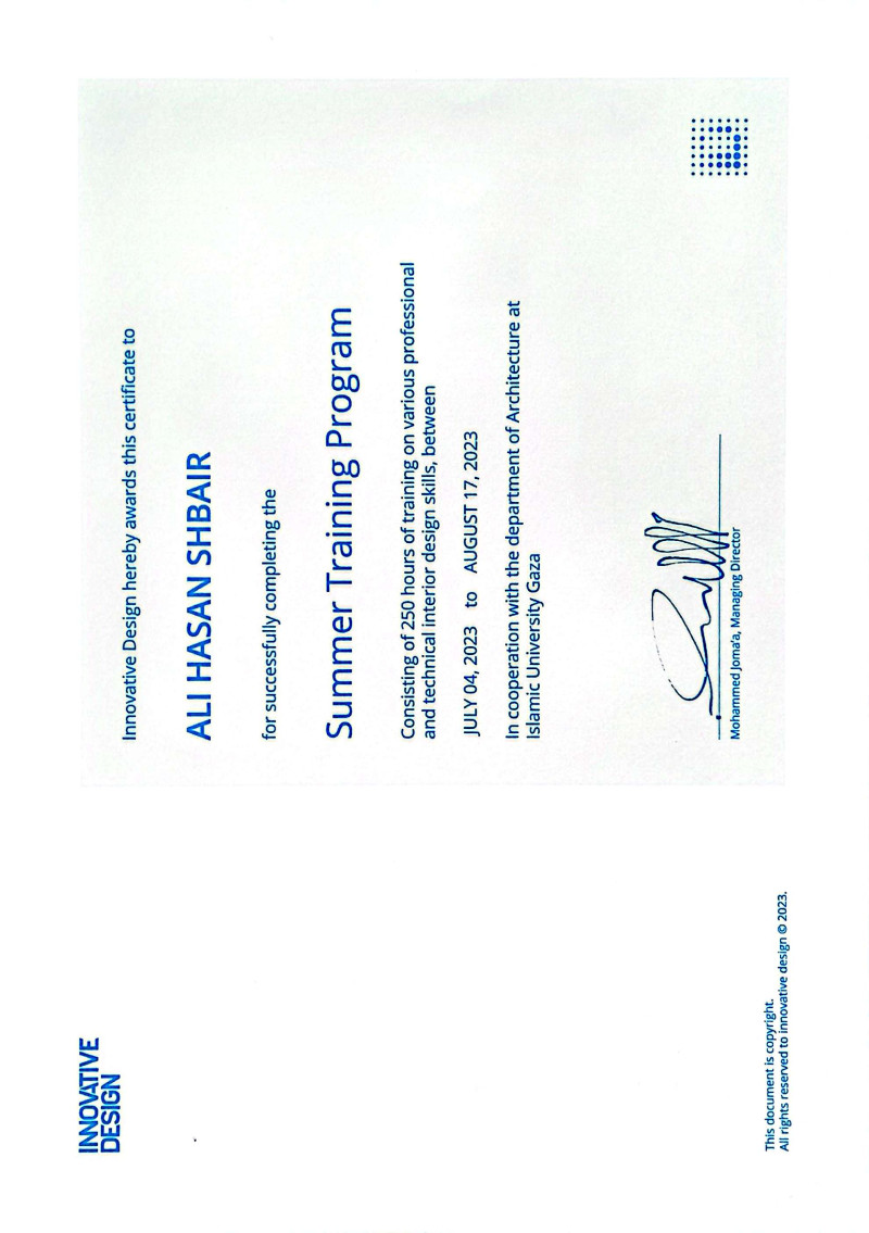 أتقن العمل على برامج التصميم المعماري باحترافية عالية مثل SketchUp، 3ds Max، Lumion، Enscape، V-Ray، AutoCAD، وPhotoshop. كما شاركت في برنامج ENGEEKS التدريبي الممول من السفارة الأمريكية، مما ساهم في صقل مهاراتي القيادية والتقنية.