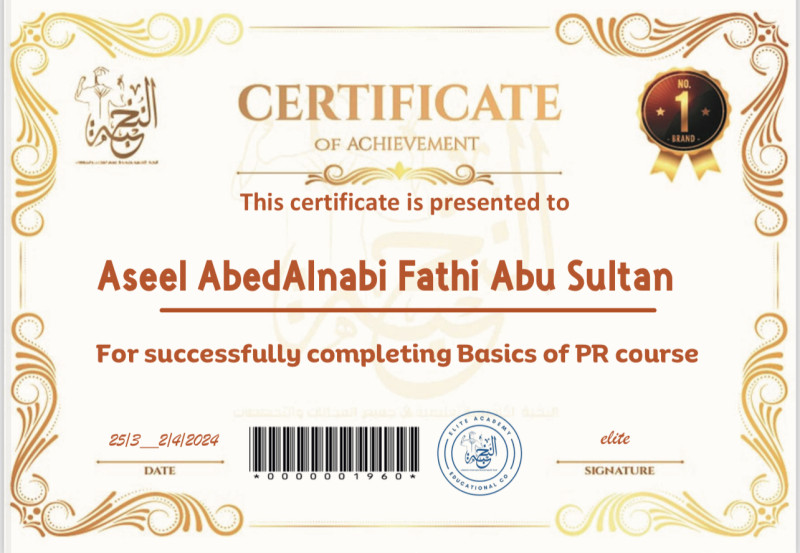 حاصلة على العديد من الدورات التدريبية والدبلومات في مجال التسويق الرقمي والعمل الحر ومجال التصميم والجرافيك والادارة.
