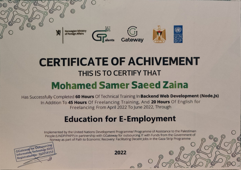 | Freelance Project ( GGateway ) | Software engineer (Node.js Deleper) |