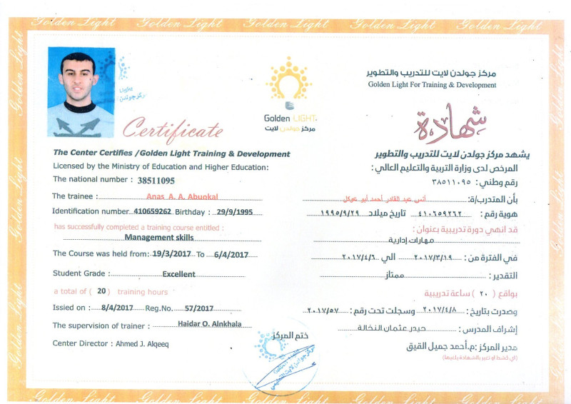 | Management skills course | Golden Light Center | Electronic marketing | 2017-03-19 |