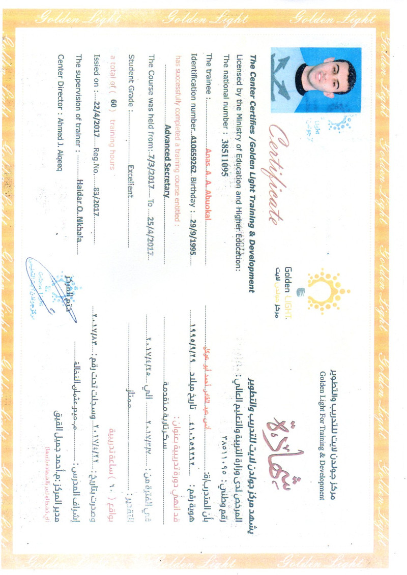 | Advanced secretarial course | Golden Light Center | Electronic marketing | 2017-03-07 |